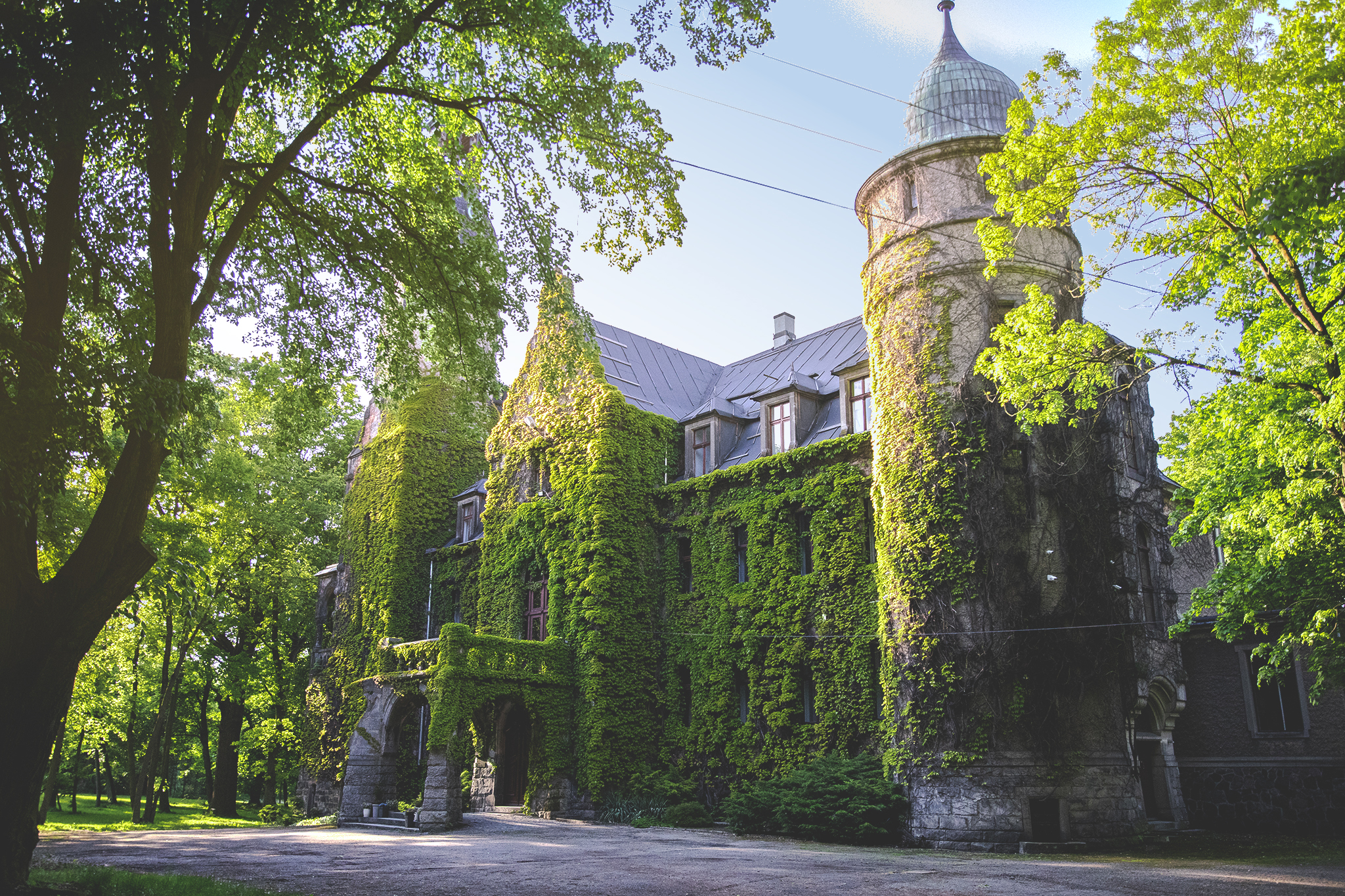A szkoda, bo elewacje charakteryzują bogate detale z piaskowca, sala balowa ozdobiona jest marmurami i brązami, zachowały się sztukaterie sufitowe, boazerie, drewniane sufity i secesyjna balustrada głównych schodów.
